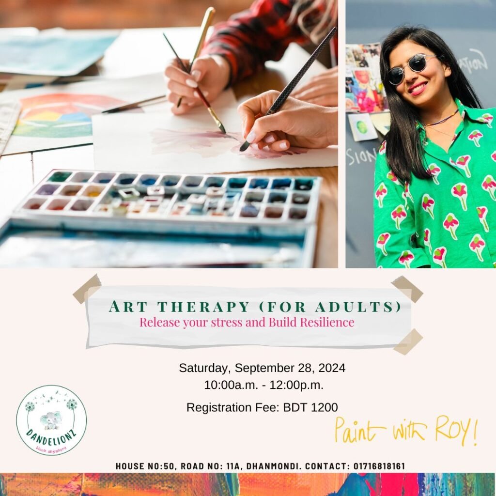 We know that happy adults make for happy families. That’s why Dandelionz in collaboration with Diti Roy is hosting an Art Therapy session just for YOU!
